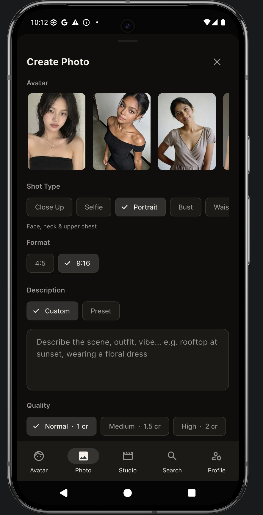 Pick your look. AI generates 4 photo-realistic versions of your ideal self. In seconds.
